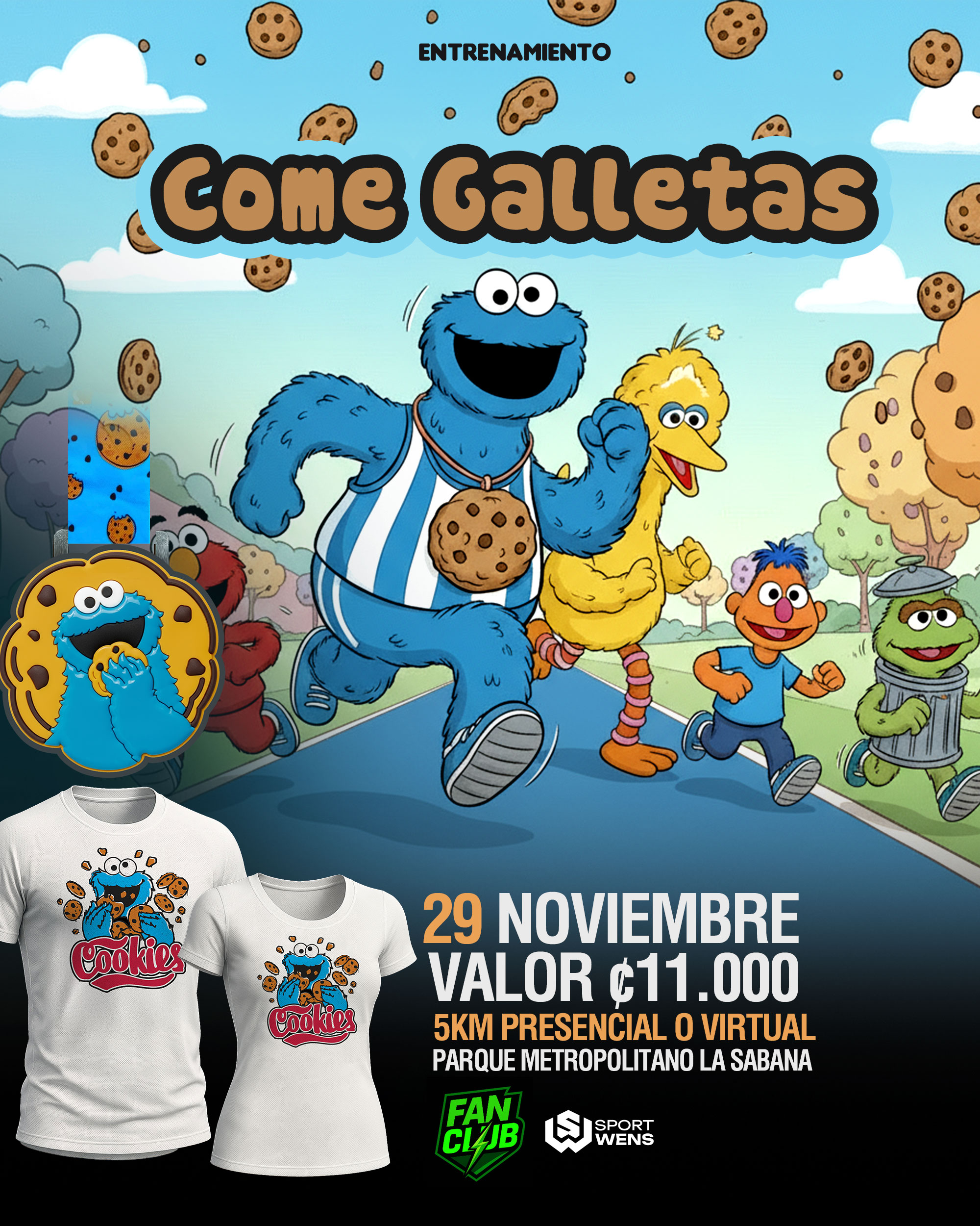 Inspirado en el clásico Come Galletas de Plaza Sésamo, vení a entrenar con energía y buen humor. El único requisito: amar las galletas tanto como correr.