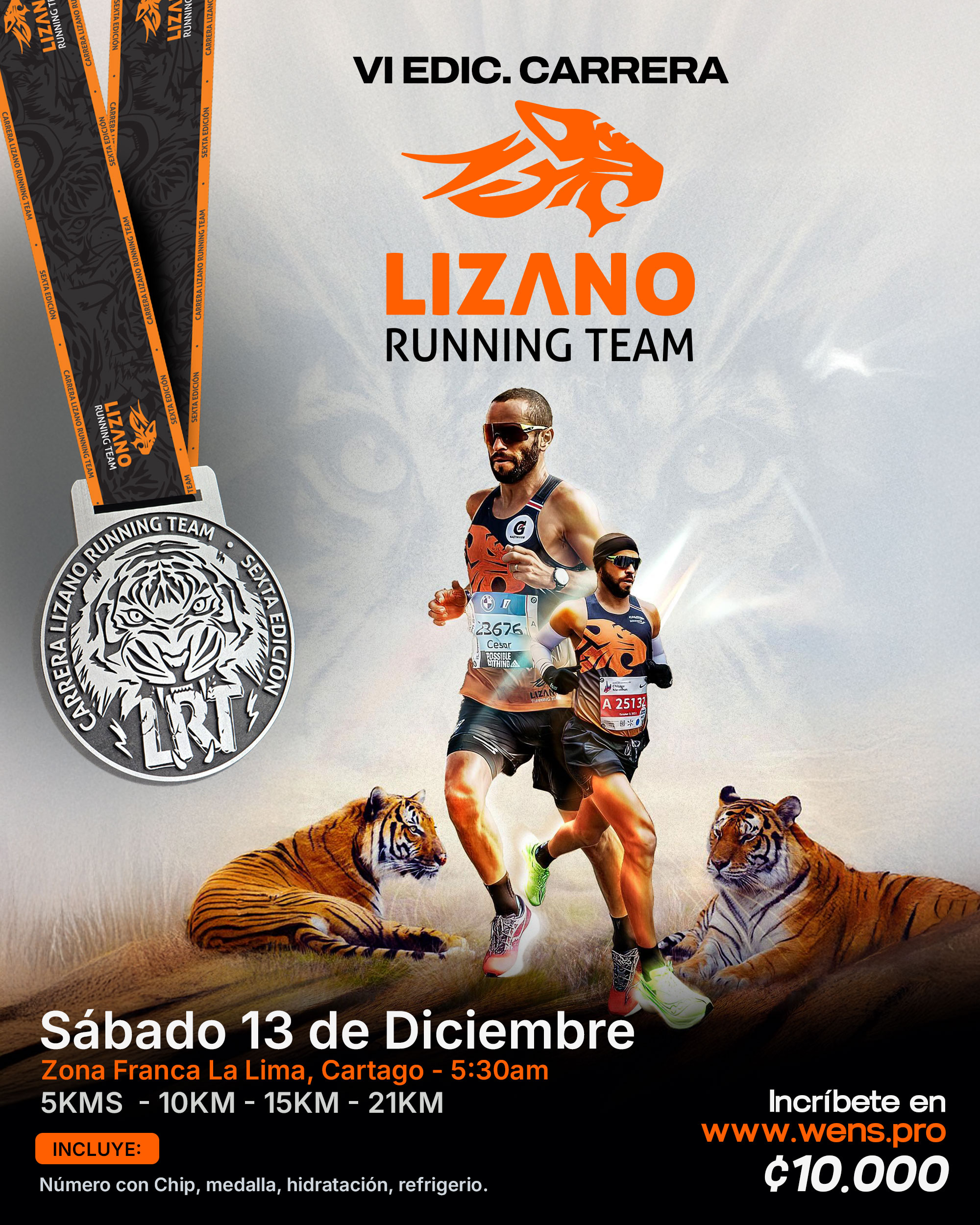 El evento se realizara el 13 Diciembre a las 5:30am en Zona Franca Z, Cartago , tendra distancias de Lizano Running Team te invita a participar en su 6ta carrera Esta edición se corre en La Lima de Cartago, una zona amplia y bonita, con ese aire fresco cartaginés y un entorno ideal para correr: calles más tranquilas, buen espacio para organizarse, y una ruta que se presta tanto para ir a ritmo fuerte como para disfrutarla con calma. Es un lugar perfecto para medirse, sumar kilómetros y vivir la experiencia en grupo. También aprovechamos para invitarte a formar parte del club de César Lizano: un equipo donde se entrena con disciplina, pero sobre todo con compañerismo. Si querés mejorar, aprender y correr acompañado, aquí tenés casa. Sumate a la carrera… y te esperamos en nuestro equipo.
