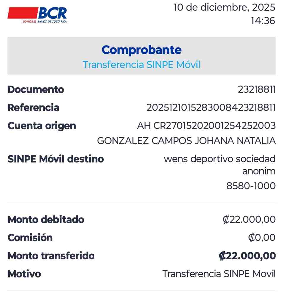 #34 WALTER SANCHEZ AGUERO / Medium Male / 87144893 / wsaxx@hotmail.comSan JoséVásquez de CoronadoPatalilloDel megasuper de san Antonio de coronado 50 este y 75 sur 5ta . Casa mano derecha NOTA EL COMPROBANTE DE PAGO INCLYE EL PAGONDEL EVENTO Y EL ENVIO JUNTOS09/13/2025 17:49:52
