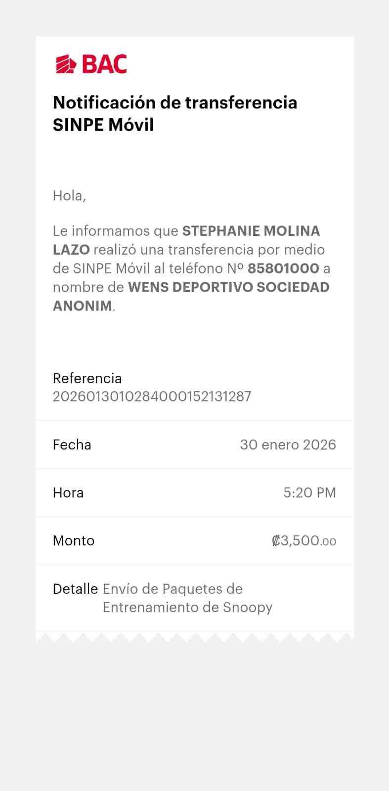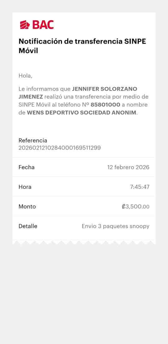 #62 Deiber Rubí Rojas / Small Female / 87442602 / deiver13@yahoo.esAlajuelaOrotinaOrotinaOrotina Villa los Reyes casa H2 // enviar los 2 paquetes de Snoopy de acuerdo a lo conversado por whasap03/01/2025 14:19:16